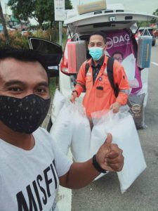 Anoy bersama suami dan dua orang anaknya ketika mengambil stok bantal di ibu pejabat DAG di Semenyih.