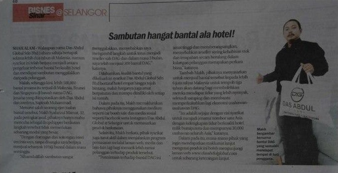 “Ketika itu saya diberi satu slot perniagaan dalam akhbar Sinar Harian menceritakan mengenai aktiviti perniagaan saya.