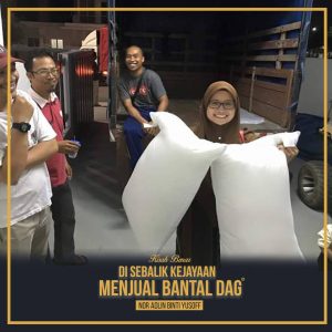 Cerita beliau, sebelum bersama DAG, beliau telah mencuba menjadi Dropship bagi beberapa jenis produk tetapi agak sukar untuk dapatkan customer dan akhirnya tenggelam begitu sahaja. Namun, berbeza dengan bantal hotel DAG ini, kerana beliau begitu mudah untuk memperolehi customer dan demand untuk bantal hotel DAG ini sentiasa ada. Sehari paling kurang 2biji pun tetap ada.