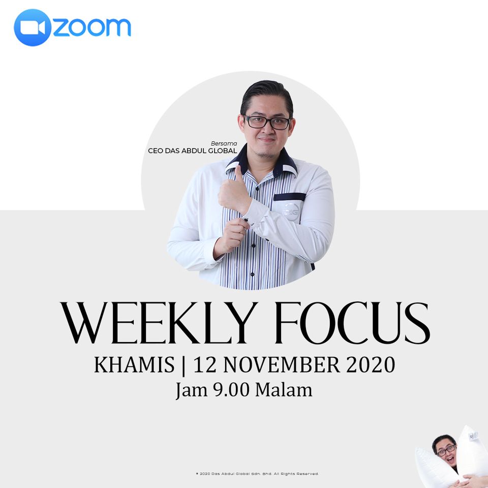 Zoom Weekly Focus yang diadakan setiap Khamis, dikendalikan secara personal oleh Tuan Das dengan penyertaan usahawan DAG secara maya.