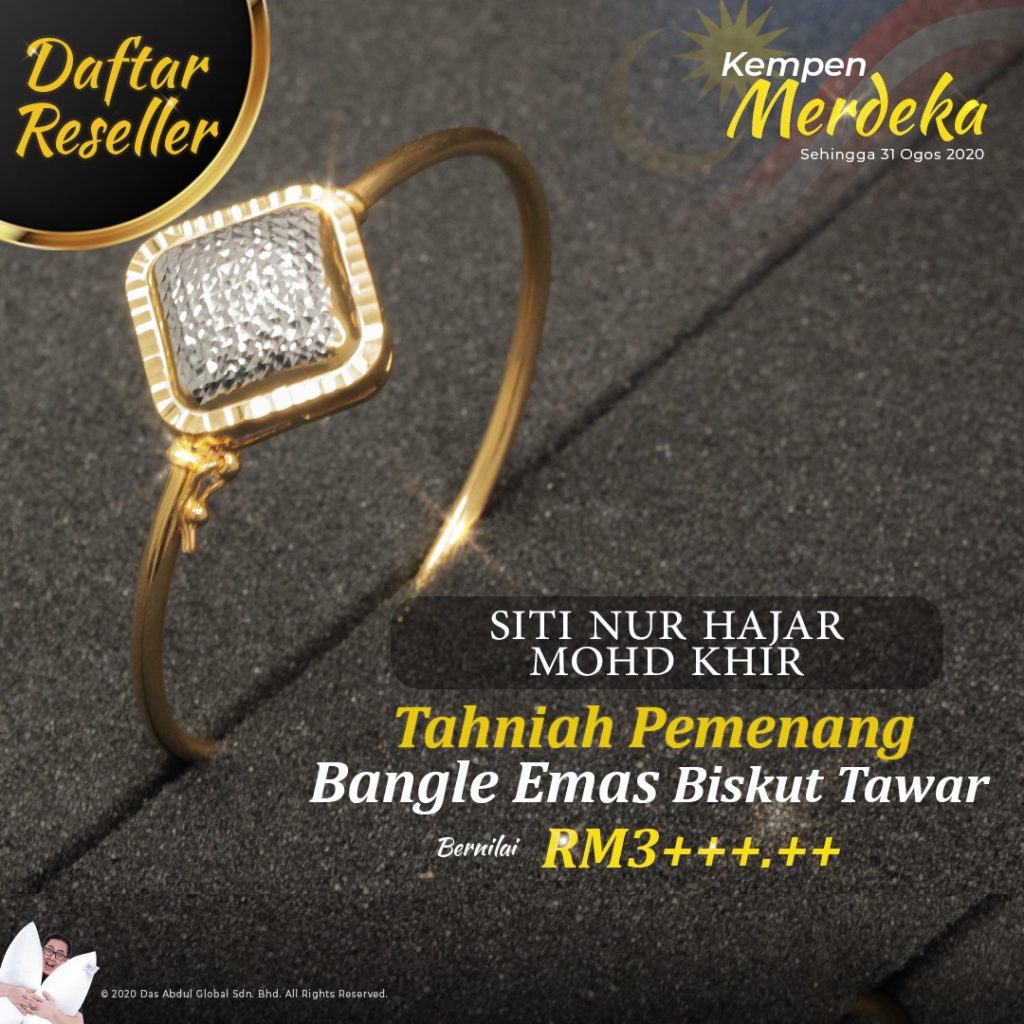 Bulan lalu, seutas bangle emas biskut tawar bernilai lebih RM3000 menjadi milik Siti Nur Hajar Mohd Khir yang baharu sahaja beberapa minggu menyetai DAG. Tahniah!