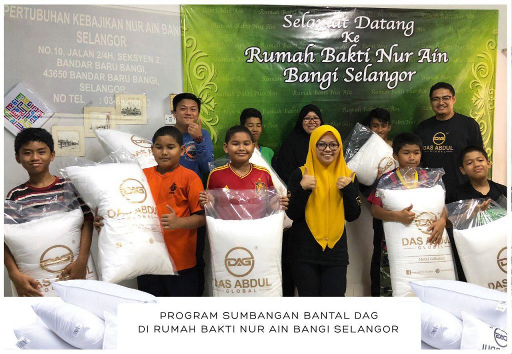 Bergaris panduan dari itu Das Abdul Global Sdn Bhd tidak pernah melupakan insan-insan yang tidak bernasib baik di luar sana. Tanggal 21 September 2018 (Jumaat) pihak HQ DAG telah berkungjung ke RUMAH BAKTI NUR AIN, Selangor untuk menyampaikan sumbangan 30 biji bantal kepada anak-anak yatim di sana.